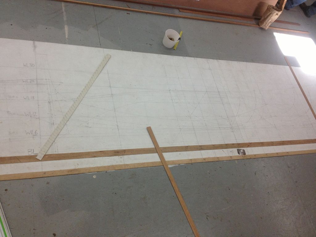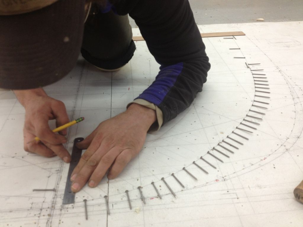 We then take the drafting and loft it out full scale on some door skin.