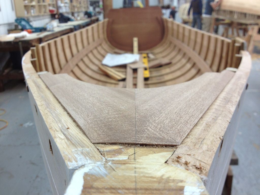 Put in the thwart risers which are the long stringers that run the length of the boat at the bottom which the benches (thwarts) get fastened to. Then I started on the breast hook, and the thwart knees. The thwart knees are these L shaped brackets that help fasten the thwarts to the hull of the boat. Masaki, the Japanese kid, is suppose to be working on the transom knees but yeah... 4 days and still almost no progress. I think I am going to steel his job from him tomorrow.
