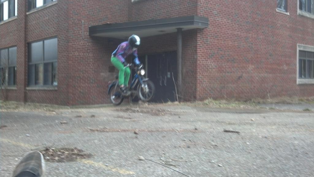 I have a LONG ass scarf that blows in the wind and a leather jacket haha. It is funny as hell, I just sit at a stop lights doing a lifted rear tire burnout.~ Puch Cafe. ~ Do business? feedback ~ Check out my leather company ~