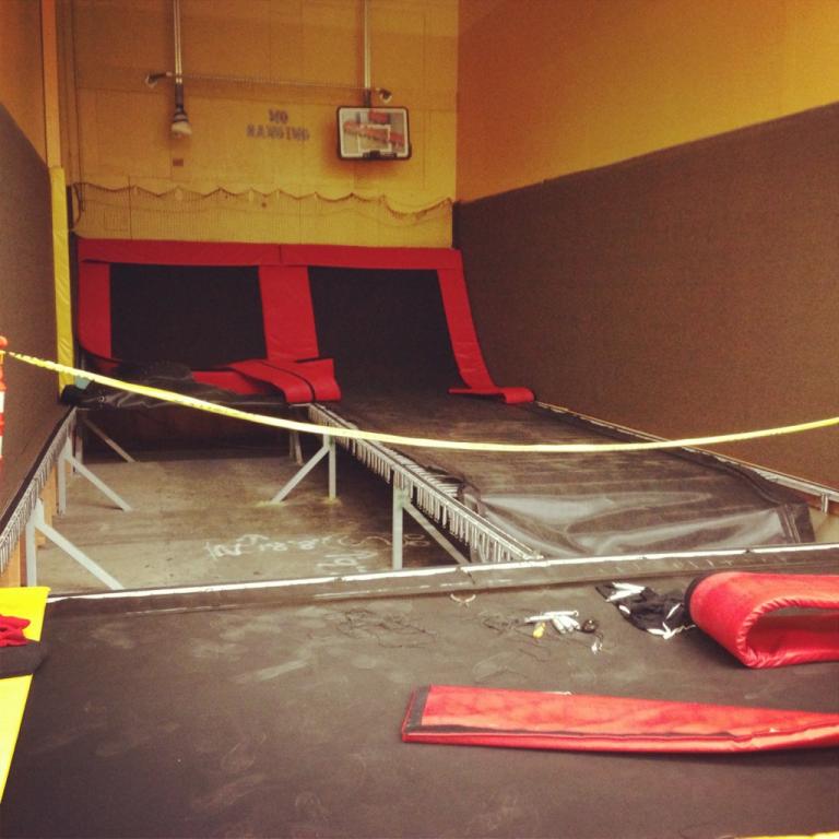 We had to do some maintenance on the lights above, about 20ft off the concrete and the ladder wouldn't be stable on a trampoline haha.