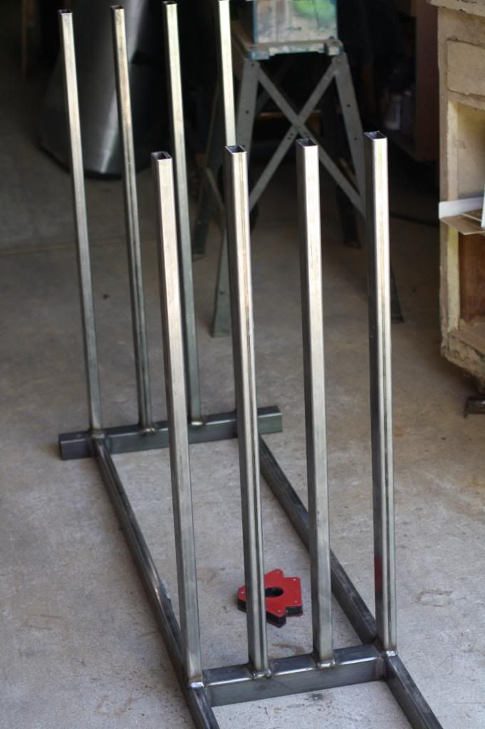 At work we do sublimation (prints on metal). It just recently got very busy and we needed some better organization for the various sheet metal we stock. Gloss aluminum, matte aluminum, clear aluminum and gloss steel. The casters I used are from Northern Tool (great pricing).