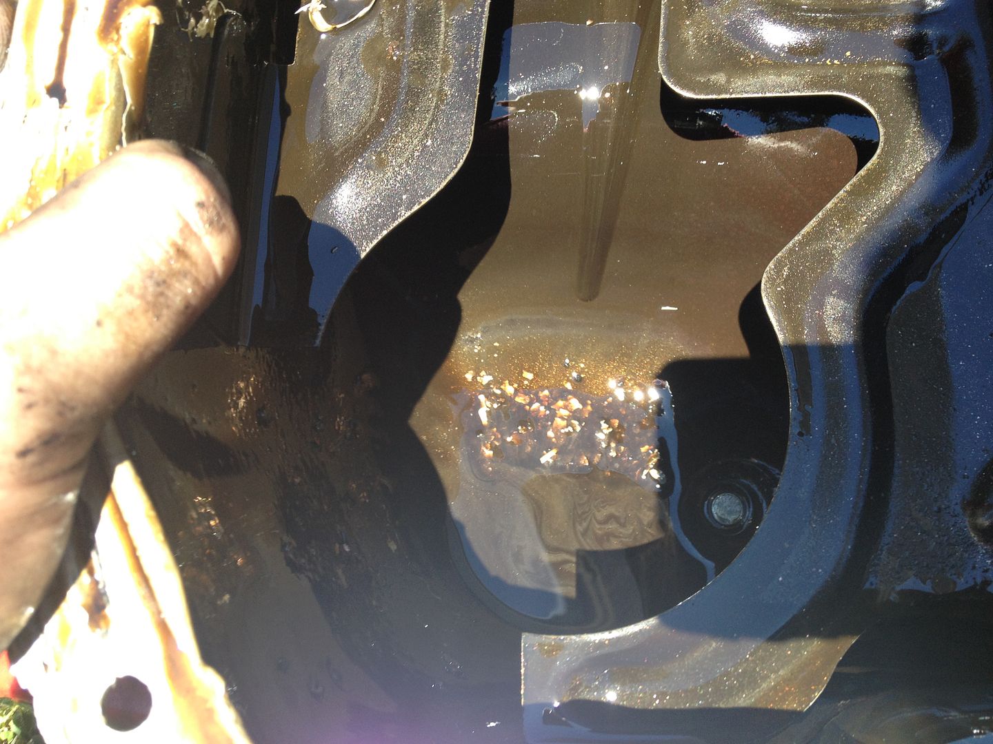I found pools of oil in the intake manifold on the old motor. I also found tons of copper and metal flakes in the oil pan.sigpic