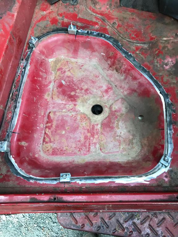 My truck is mechanically sound. Engine and transmission are good, frame is solid, and I swapped in an EMU suspension. Everything down to the courtesy and dome lights work. But the tub has rust. I started on the passenger floor pan under the gas tank. Yes, the gas tank is inside the cabin under the passenger seat. Put the plasma cutter to use, and welded in a good pan. 4.5 hour project.