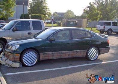 honestly, i <3 both those cars. the green one is ugly as shit because of the wheels, but i <3 the plaid, and the green and red plaid coupled with the shiny wheels reminds me of christmas. the bottom looks like a bigass wrapped christimas present.