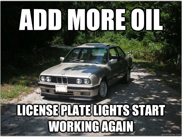 I'm sayin regardless of how much oil was in the engine, the plate lights always workedIf it's got tits or tires, it's gonna cost ya!Comment