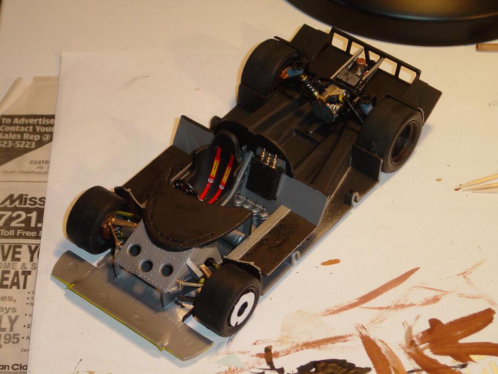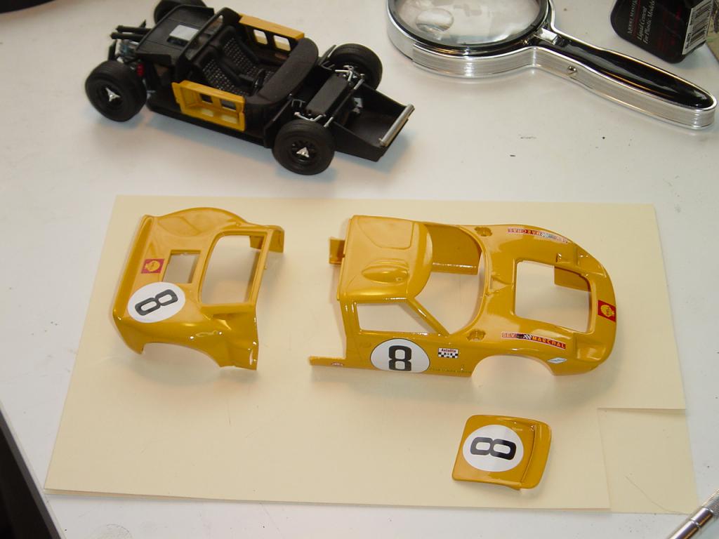 We search around for specialized decal sets for specific cars and planes. None of this came with the kit. There you can see the Gurney bubble, and I made a custom hood vent because the kit came with the double triangle vents and I wanted the straight style.