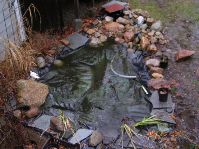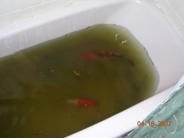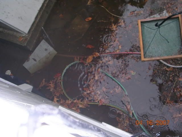 Rain sucks. I wake up at 6:30 today to find this shit. My basement is kinda flooded, not bad though. My mom's fish pond's liner is coming up for some reasonWe had to get the two fish out so now they are in my tub. That is pond water in the tub.