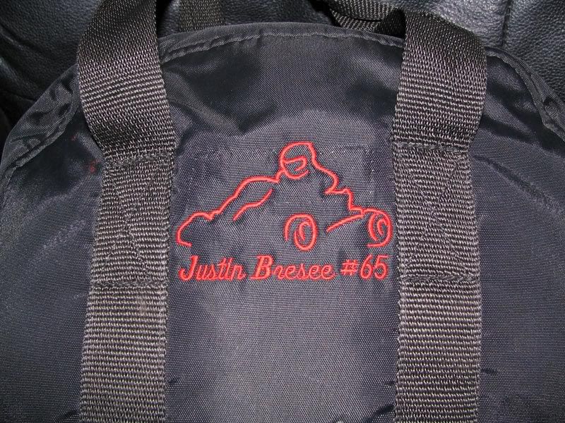 Ugh, character map ftl so I'll keep it short. So I finally got my design digitized and put it on the back of my suit and helmet bag. My last name was already there so I did it in the same red, I'll do up some hats, polos, jackets, whatever later for my family and whatnot. Let me know what all of ya think of it =) I may someday do up an E30 design too, but probably not all stylized like that. Probably wouldn't be cheap, something maybe for a nice jacket or something. Depending how nice it is, anybody think they might be interested in some largeish embroidered design? Anyhow, that took took too long...On to the pictures...
