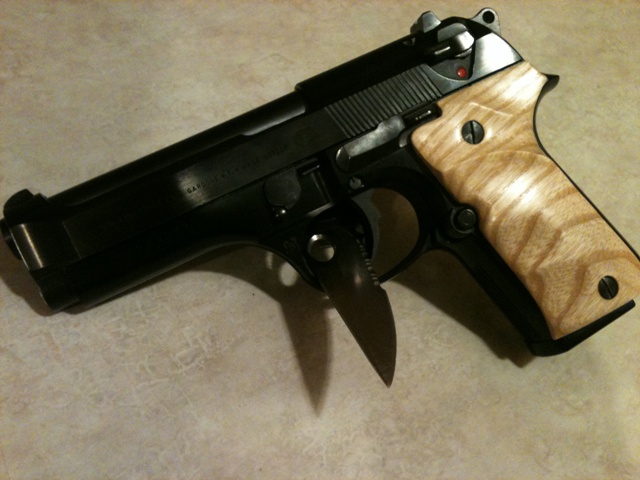 thought I might throw this out here instead of the classifieds. These are for a 92 compact model. (1) set of Beretta 92FS Compact grips, w/right hand thumb rest and finger cuts Ash wood, rotated grainline, clear shallec finish. Looking for $55 shipped, Thanks, Eric[sigpicComment