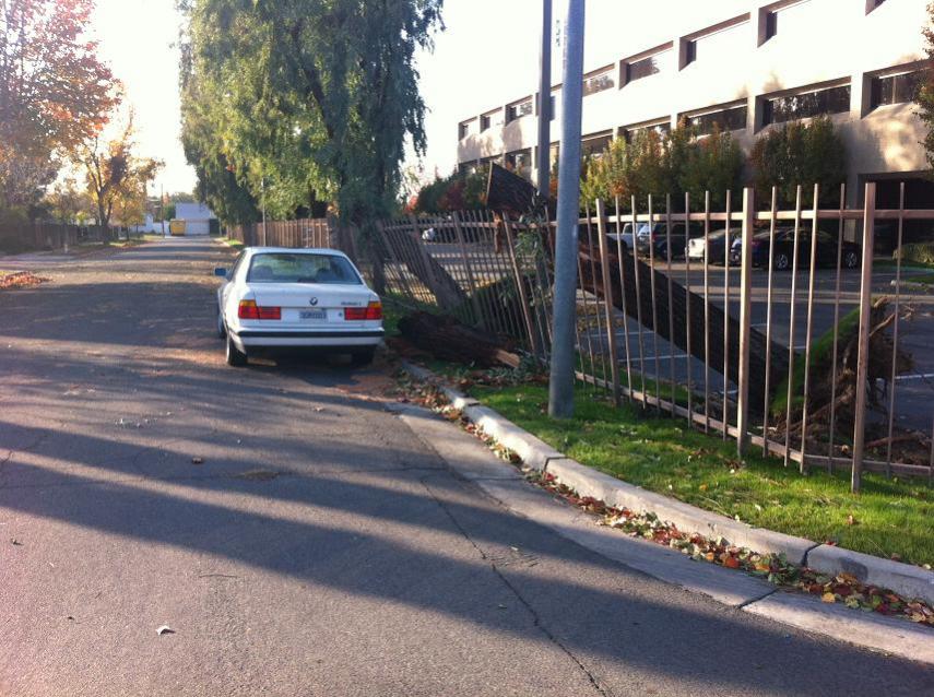 Shortly after the tree fell on it the other tree next to it fell too. None of the other trees did, and there were no other cars parked on the street either (see pic). Murphy was a wise man.