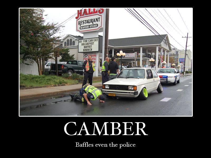 he took the springs out of the perches and wedged a bolt behing the hub to achieve this. Its silly, and if it wasnt so unsafe i would say its sick! But anyway he got pulled over once, they told him it was unsafe and he had to park it. He went to leave the next morning, the same cop got him and the impounded the car...Leave a comment: