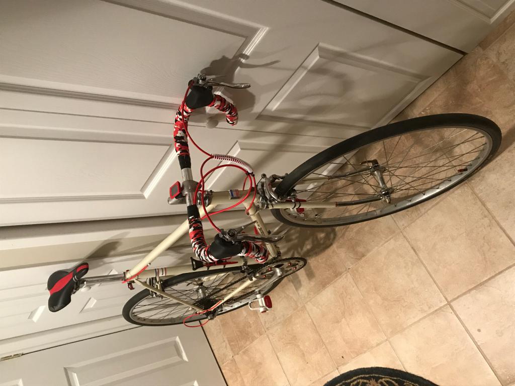 My son was looking to get into road biking, so I fixed up an old mid-70's Panasonic as a starter. It’s still a mid-1970’s 10-speed on a mass market Japanese steel touring frame, but it works and looks much better now. The Shimano drive train is pretty bullet proof. Component list: Shimano Tourney double Crank, Look Delta Clipless Pedals, Original Shimano 600 derailleur (r), Shimano 50 deraileur (f), vintage Dia-Compe center pull brakes, modern Gevenalle Audax shifting/braking system with Dia-Compe friction shift levers, 3TTT handlebar, SR Stem, Sovos Hubs on 27x11/8 rims, Continental UltraSport tires, Cateye Strada wireless computer, Selle Italia X1 seat. Basically it is set-up kinda like a CycloCross bike but with a longer touring wheel-base, road tires & a few plush comforts. I think it’s pretty cool.