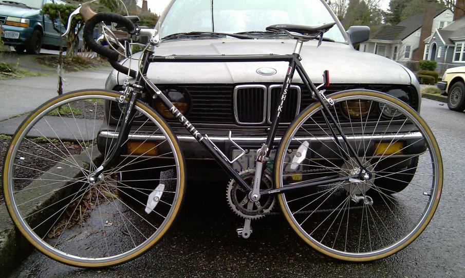 I'll get better pics showing the paint, and the front disc setup I just installed. I'll be de-decaling the wheels, and if my (bmw)wheels sell I may spring for a Titec Ti flat bar....