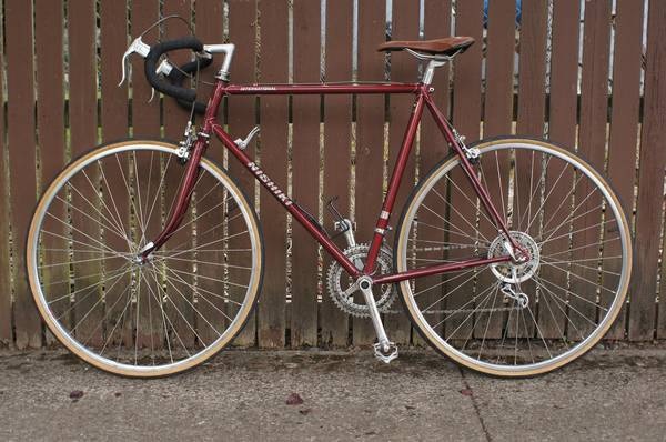 This bike is in excellent original condition. No rust, always kept in garage. Rides great, gears switch smooth, brakes excellent! The best bike I have owned, a true pleasure to ride. Housing, cables, brake pads and tires are all in great condition. Rich dark red color with matching light brown leather sports seat. Very detailed, handcrafted in Japan! Very classy and vintage looking bicycle, perfect for Portland :D All yours for only $275