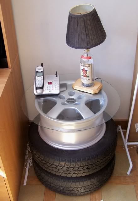 Just like the topic says, what kind of furniture do you have made from BMW Parts? I have been making a few things over the years from different parts. Here is a simple table I made in about 5 minutes. sorry about the mess :p