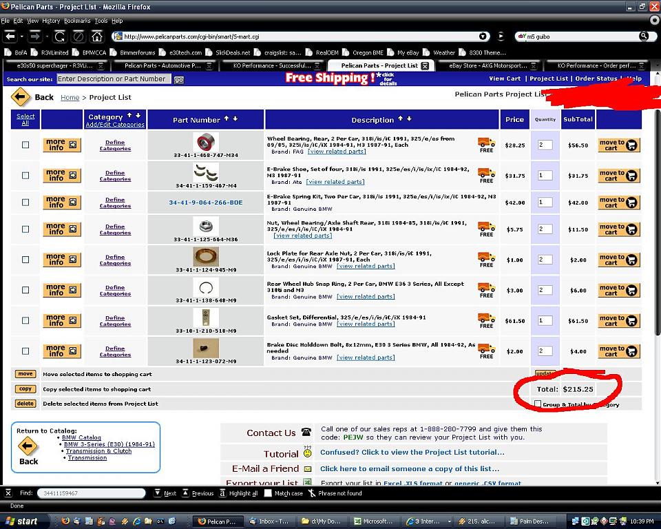 So this doesn't really qualify as transaction feedback, so I thought it would belong here. Got a mid size order of parts I need for rear end refresh. These are pretty basic parts, and if I could get BMA's or FCP groton's websites to find all these parts, I'd include them. I suppose BavAuto too, but the first thing I went to was 20$ more expensive.
