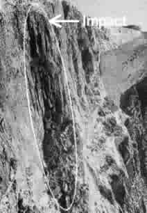 It hit the 12,005' cliff at about 11,570'. They said it appeared he was trying to climb. He may have been in clouds. Some loggers at a camp 10 miles away saw a 4-engine plane pass overhead and later heard what sounded like a cannon or mining blast.