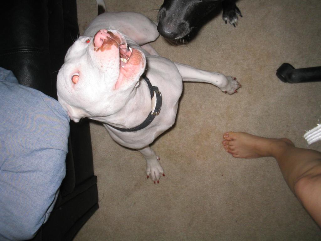 we've had her since she was young... We probably could have had her interact with other dogs more often but we did somewhat. She was very people-friendly but animal aggressive. She had been with Garota since she was young but Garota had already been with us for a year or so. Their fights were just a matter of two bitches living in the same apartment. Territorial type of bullshit. It never went away and these fights were really bad.