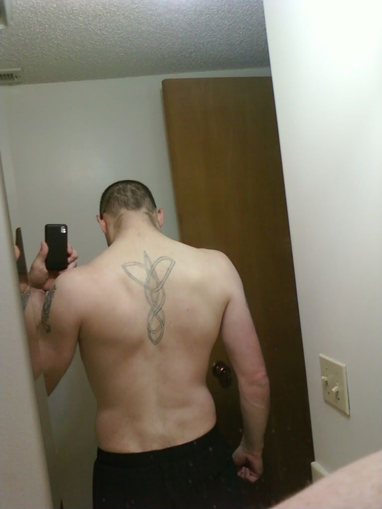 And a yet unfinished tribal piece on my back. Dude was freehanding it, laid these lines down and was killed within a week in a drug deal gone bad. eventually it will get finished.