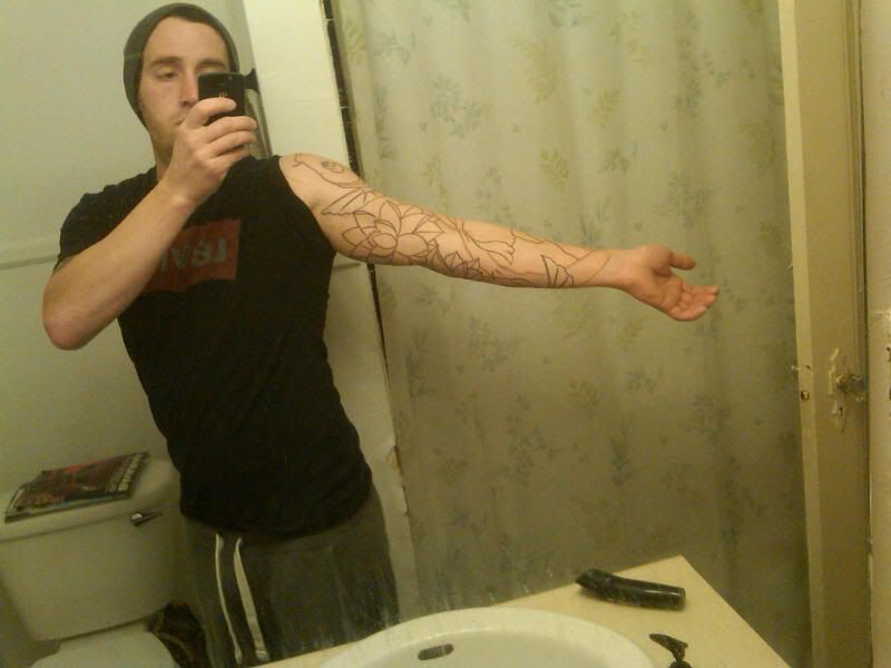 Just started on my arm last sunday. Just basic outline for now. Going back to bold up some lines and start on shading early next month.