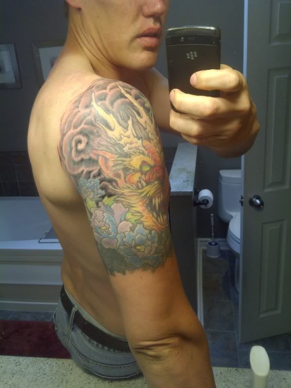 The skull/girl are over 20 years old and had it recolored and a bunch added to it. On my shoulder was a crappy little dragon which I had covered.Leave a comment: