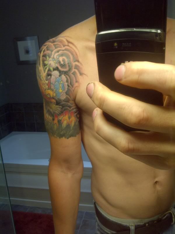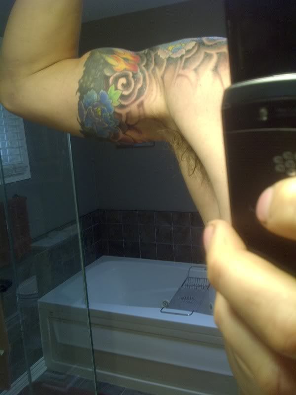Nothing too crazy added, just touching up mostly. Next week we're getting started on the background color. Might not go too crazy after although i'm already thinking of tryin a half sleeve on my other arm...goddamm this shit is addictive!!!