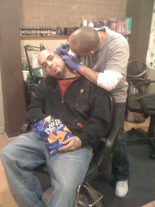 I've fallen asleep during every tattoo i've ever gotten for long periods of time except the stomach piece. Which was awfully painful. I cant even imagine getting head tats.Leave a comment:
