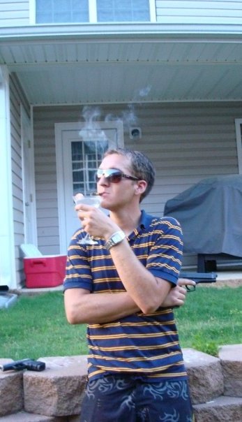 That was the point, to look stupid, shrimp and white wine? I don't actually walk around like that, smoking a cigar, wearing swimming trunks and a polo, drinking white wine with a shrimp on the glass, wearing womens sunglasses, and toting an italian pistol.sigpicComment