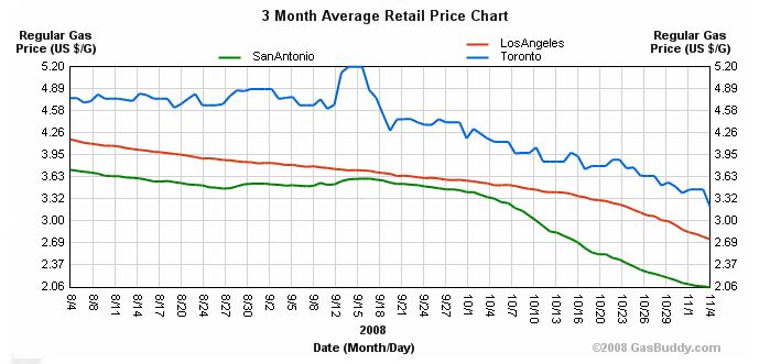 It hasn't been this low ($1.99/gal.) since the summer of 2004. For me, a filled up with premium for $2.59/gal, so not bad.