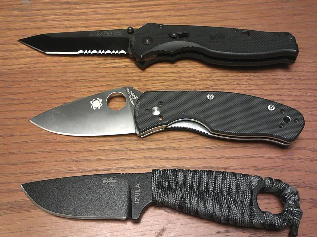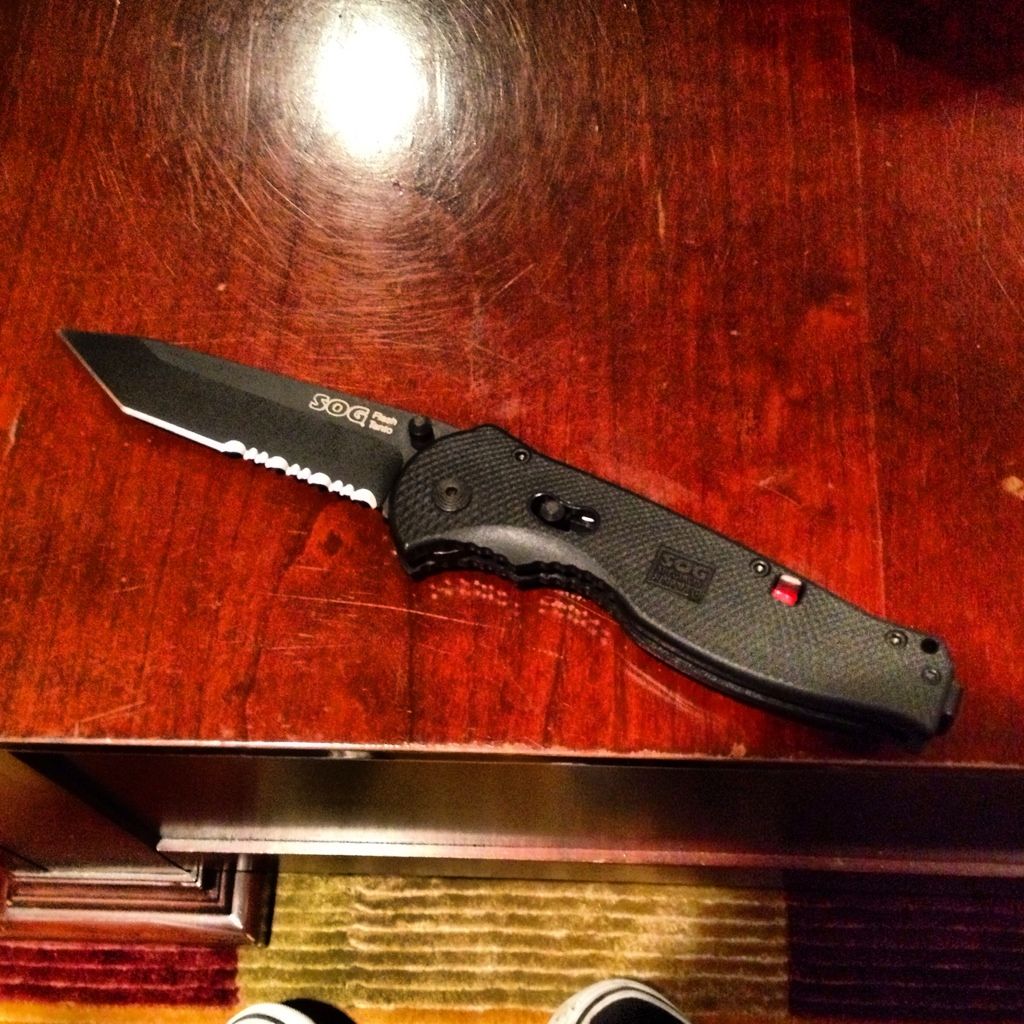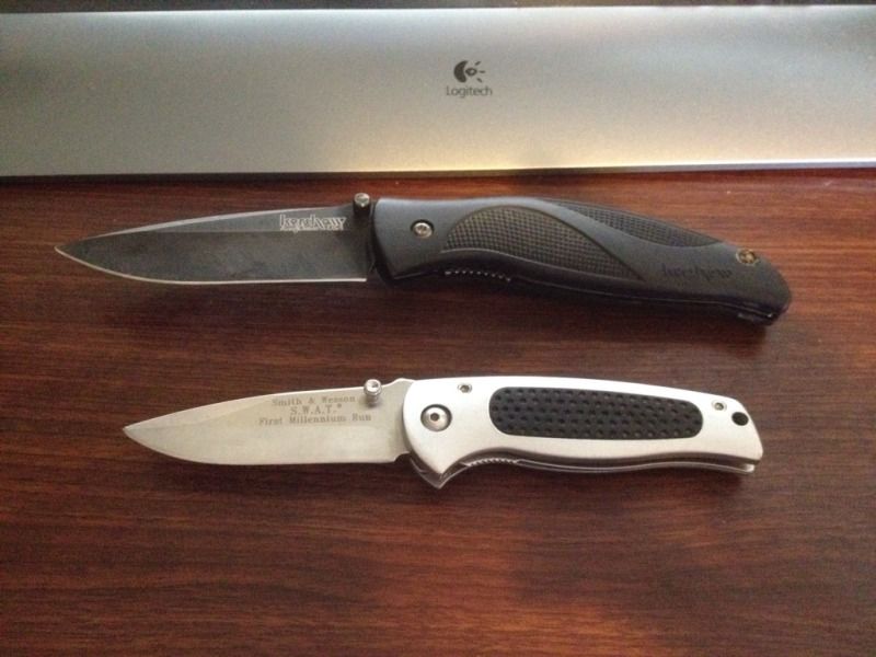 Smith & Wesson my dad gave to me and a Kershaw my friend found who I then guilted into giving to me for a favor he owed. Score! Admittedly the speedsafe function concerned me at first, foresaw it catching on a pocket as I open it and flicking the blade open....but everything I've read tells me they're not to worry about.