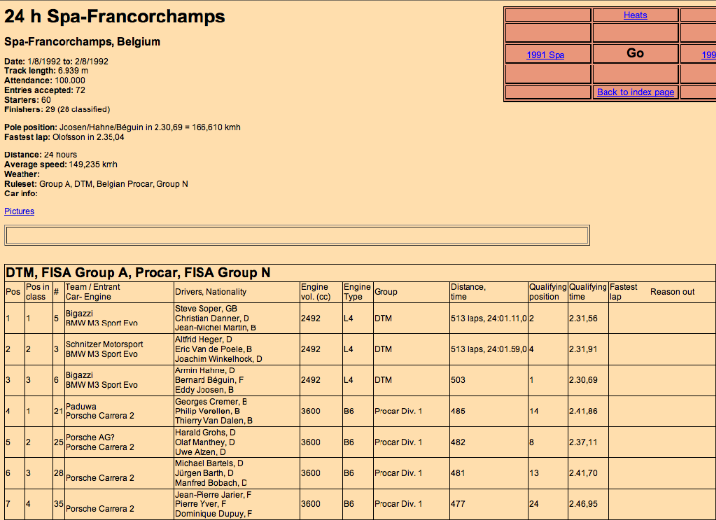 Here are the official race results/times. Note that M3's finished first, second, and third.. sweeping the podium. Talk about dominance!