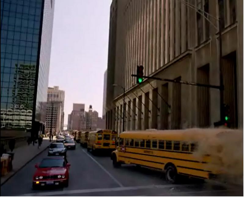 The Game with Michael Douglas, 54 minutes in, going the opposite way in front of the Nissan truck when Michael Douglas's e38 crests over the hill