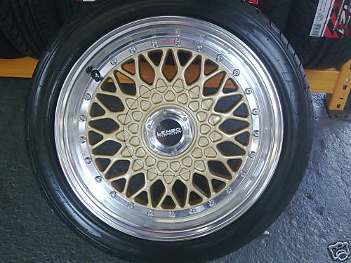 I hope this can help, next time post a better picture or lkist the brand of the wheels and maybe someone can find gold ones and photoshop them in from another pics...anyways...