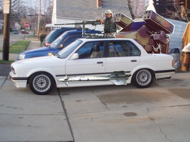 hahahahaahhahahahahahahahahahah lmao hahahahah hahahahaha lmao! i loved the fuckin iraq special addition! thats the old school james bond car. haha fuck the computerized missiles and shyt...bitch i ride around with niggas sittin in my trunk with fuckin rocket launchers, fuck with me if you want to. have you shittin mushroom clouds haha.