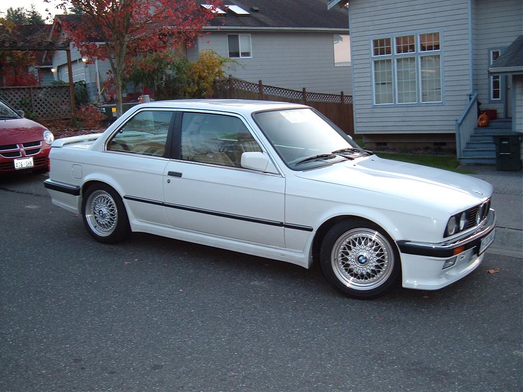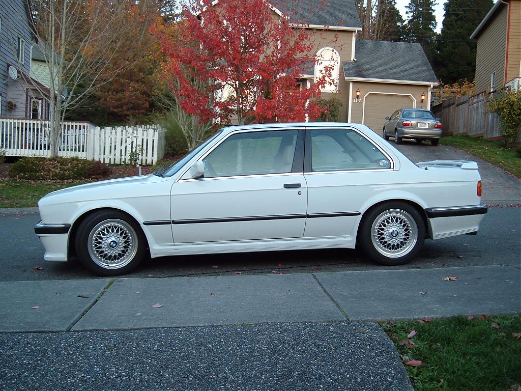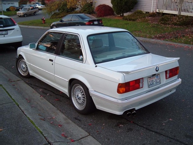 I don't know if this is too difficult, but can someone take an m-tech 1 spoiler (say the one from James' car), then color match it to my alpine white II, and also color the black rubber white as well, then replace my current spoiler with the color matched m-tech 1? If anyone in or around Bellingham area can do this for me, I'll gladly compensate with some beverages. If you're not in Bellingham, you get the satisfaction of helping out a fellow E30 owner. While we're at it, how bout tint and shadowline.