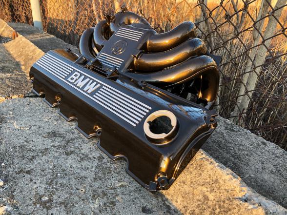 So I have a dilemma I took the head off to have a rocker arm repaired. I have the intake manifold and valve cover off but cant decide what color to powder coat. I like bronze but not sure how it will look on a red car the only pic I can find on internet was on a black E30. Hopefully you the community can help me please post pics if possible.