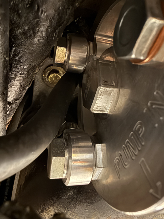 I used a reducer to go from the 12mm fuel line coming from the in-tank pump to the 8mm nipple on the surge tank. The reducer is a little above the surge tank.