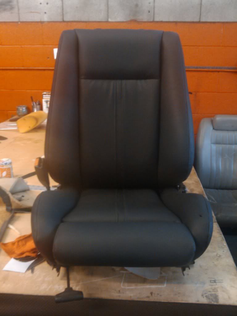 Dave I have a couple of samples of what my brother is working on, they are (leatherette vinyl) and will most likely go for $650.00 with your sports seats as core or $750.00 out the door. Everything works as far the mechanisms and they got high density foam for the new and firm feel. Hopefully people jump on them now, we had a set for $750.00 plus core that looked like the first pic and they sold in 2 weeks. Not too bad if you ax me, let me know when you're ready.