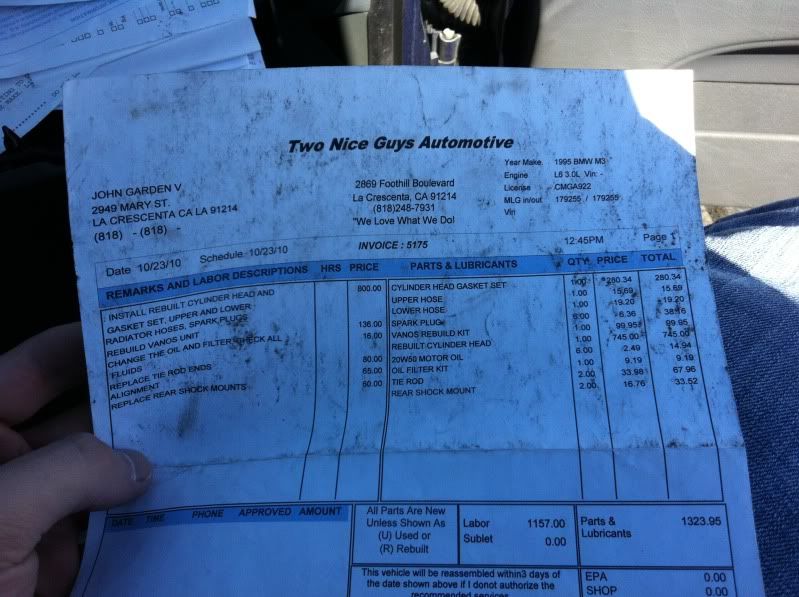 refreshed and rebuilt cylinder head along with all new intake seals, rebuilt Vanos unit, valve cover gasket, spark plugs, intake boot, air filter, radiator hoses, etc. new battery, rear shock mounts, and tie rod ends. I have paperwork documenting the work done from the shop.