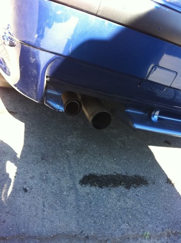 When I got the straight pipes welded up, the guy welded on the stock muffler tips for me. Later that night one of them randomly snapped off as you can see here: