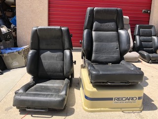 Hi guys... I have access to some NOS unmounted 80's and 90's Recaro seats. I met a guy that has all of these sitting in a storage in the SFV. He has 7 seats and out of those 7 there is 1 complete set, all the rest are individual seats. They were showroom seats mounted on Recaro display mounts (as seen in pictures), that's the reason for having only 1 of each.