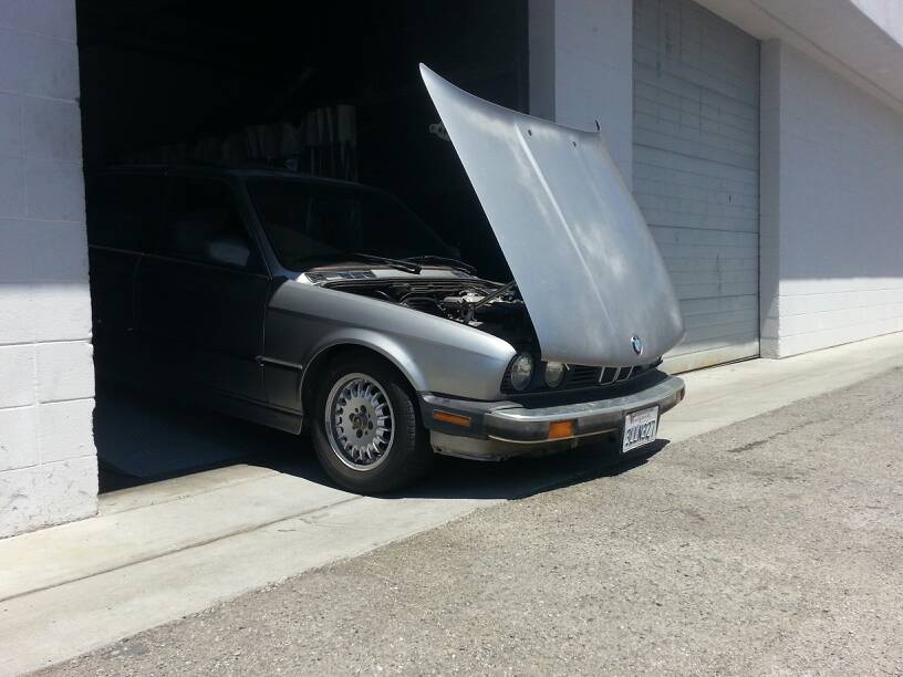 Some scary shit happened though. While I was on the freeway I was cruisin' and heard a loud clunk. It only happened once so I figured I hit something. I kept going minding my business. Then I am coming up to my exit and while I am getting off I hear the clunking again. I come about twenty feet the the stop light and my front right wheels locks up and I kind of skid to the line. I was like wtf. I creep forward a little and it clunked real bad again. Once the light turned green I kind of darted forward quickly and as I pulled into a driveway my wheel locks up again. I put my hazards on, get out the car and check it out. I see my caliper resting against the inside of my wheel. I pull all the way in inspect some more and realize I lost a bolt that holds in the caliper, so when I brake it spins and rubs the inside of the wheel. Luckily I had just adjusted/fixed my ebrake and I was able to use that to make it to the smog shop. Once I am at the smog shop my car is backed up on the rollers and as he goes to do the test coolant starts to just pour out of the tank. we stop, check it out and kinda bs. I added some water, sat the coolant tank flat (it leaks when on a decline) and continued the test. And it passed. yay.