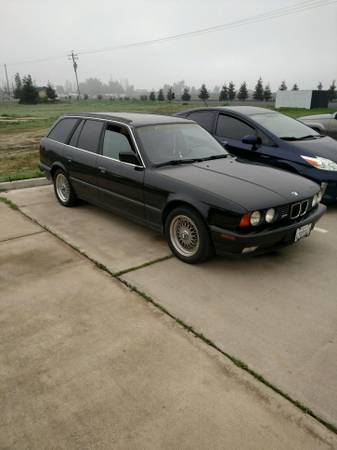 Okay so the touring I found yesterday is a black/black '92 with 262k on it. It has a sizeable dent/scratch on the rear driver side panel and needed a new tail light and rear bumper which the owner says is an off black, blueish color but very very hard to tell that is not correct. The sunroof does not work and he says the front bushings squeak and the rear needs new strut mounts. The tires are oldish but it has clean BBS wheels, also has the E34 twist in the passenger seat. However, heater and AC work, as well as heated seats, no rips or tears. It has some clear coat issues here and there but nothing major. Also has a tiny oil leak, he says about a quarter size spot after a long day of driving and thinks it's from the oil filter housing.