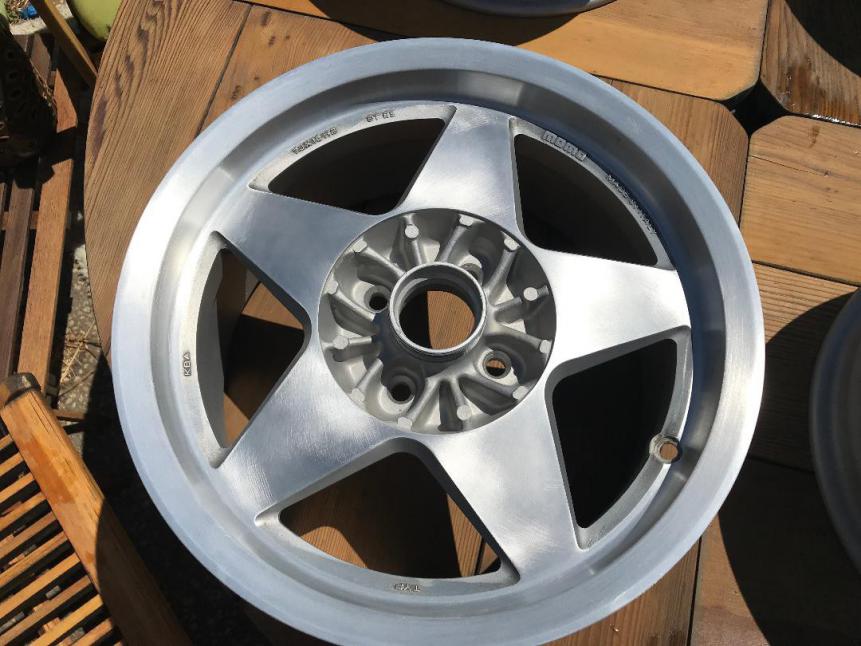 I have a very nice set of RARE old school 4 x 100 15 x 7 ET25 MOMO Penta star wheels. None of the wheels have any curb rash nor are any of them bent. The center donut pieces (lack of a better word) are nice, no nicks or scrapes. Three of the nuts are decent and have some small nicks from where someone at one time has tried to use a pair of pliers to remove them and I believe the gouges are minor enough where you should be able to file and sand them out. One of the nuts is kind of bad and you may need to source another one. None of the lug nut holes have any "egging out". When I got them, someone had already stripped all of the paint off of them and tried to polish the surface of them. I wet sanded the machine marks off of the faces with 220 and 2000 grit on the outside lips on all of them, in anticipation of polishing them. I just don't have the time to complete them. They could all just be painted (like the were originally from the factory) or finish polishing them. I would prefer to sell these to someone in California (I'm located in Salinas) and who could come and pick them up as Shipping will probably be quite a bit. I will still work with someone who wants to ship them, but I would have to see what it would cost to ship them to their location. I can send additional photos if needed to whoever sends me a cell Number to send them to. Payment to be made via Pay pal friends and family. $600. OBO + shipping.Comment