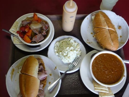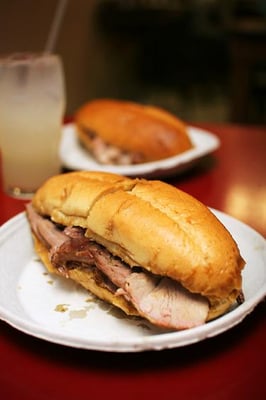 damn good french sandwiches! i like getting my sandwich double dipped in their special sauce, definitely try it that way. featured on man vs. food. located in china town. gets pretty damn busy! been around for nearly 100 years.