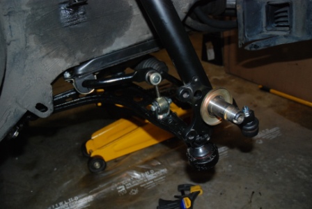 Pic 5 -- Struts reinstalled with new control arms & bushings, tie rods, sway bar links & bushings