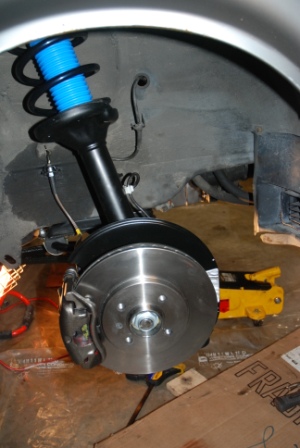 Pic 6 -- Front suspension back in with new hub/bearing assemblies, new pads & rotors, rebuilt calipers and SS brake lines