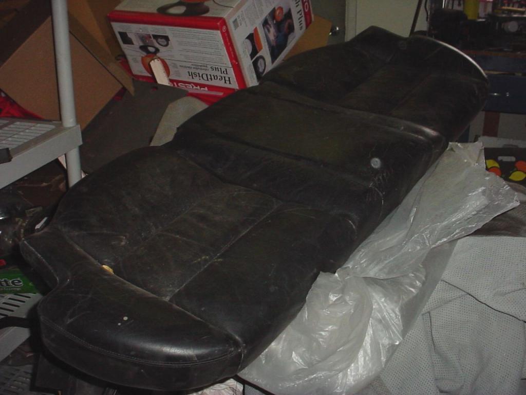 Nope, found a black leather seat bottom in the attic. Are you going skiing???? You could cut the foamed ( not springs) blue seat back and make an opening, i have 30 Yrds. of black vinyl upolstery, cover it or have a shop cover it. Anyone else i have fabric bolts of RED, BLACK, and some other colorsComment