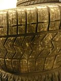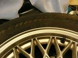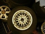 Nice set of weaves with tires that are usable for a little longer but a couple are on their last legs. Wheels are damn nice no curbage, damage or anything. Some baked on grime deep in the spoke like any weave but I just washed down the 2 that are off with car soap maybe some elbow grease and something nastier will take it off. The ones on the car didn't even get wiped down for pics. Caps from clean wheels I have just no pics of them, but in good shape. Tires are 205/60/14 firehawk wide oval something or other