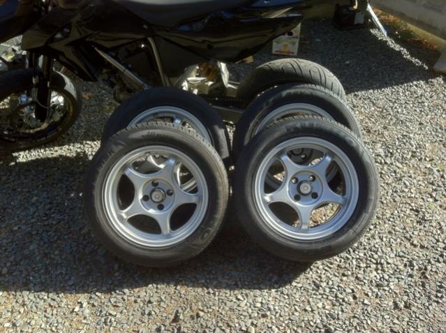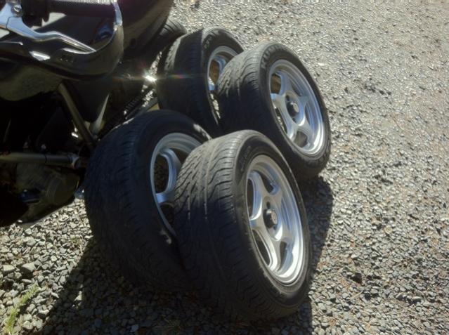 Dforce LT5W wheels. Tires are in decent shape with tread left. Maybe a season or two. Rims are in great shap, no curbing. Some very minor scratches that I can try to picture. BMW center caps and stock Dforce center caps included. Direct bolt on! 4 lug 15x7 ET25. $450 OBO.